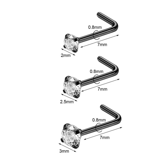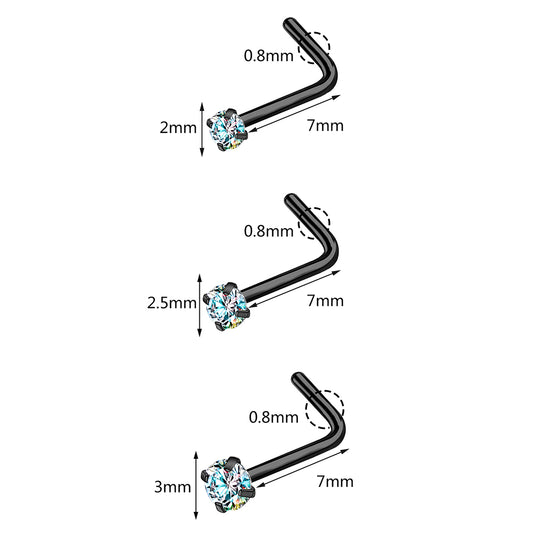 6 Pcs/Set 20G AB White Crystal Nose Stud Piercing L-Shape Nose Ring Black Nostril Piercing