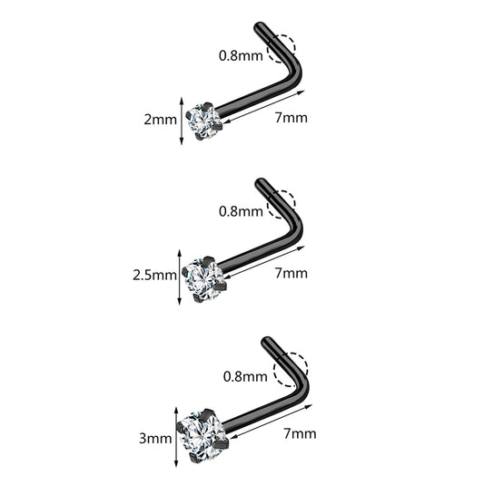 6 Pcs/Set 20G Black Crystal Nose Stud Piercing L-Shape Nose Ring Black Nostril Piercing