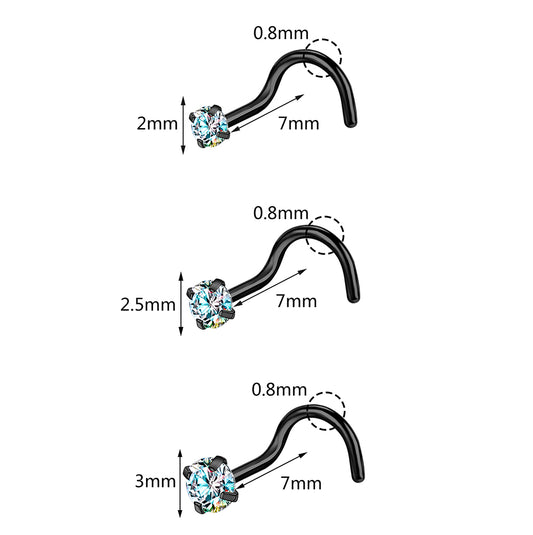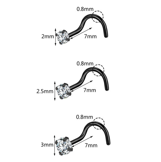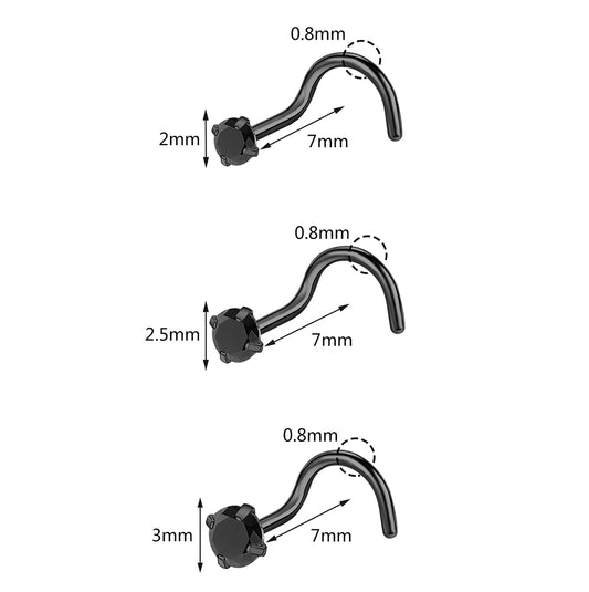 6 Pcs/Set 20G Black Crystal Nose Rings Black Nose Stud Nose Corkscrew Piercing
