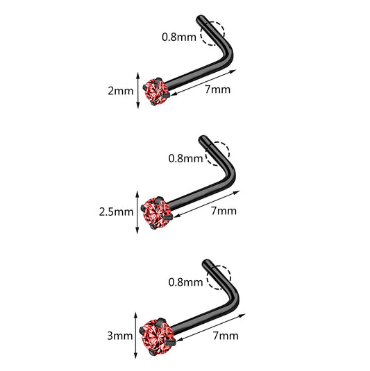 6 Pcs/Set 20G Red Crystal Nose Stud Piercing L-Shape Nose Ring Black Nostril Piercing