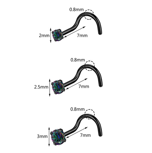 6 Pcs/Set 20G AB Black Crystal Nose Rings Black Nose Stud Nose Corkscrew Piercing