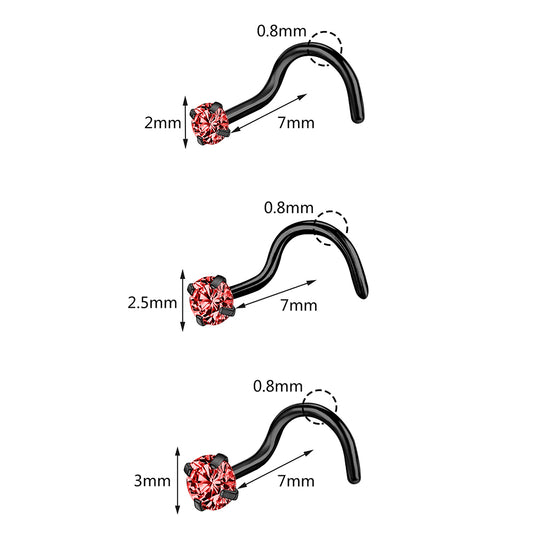 6 Pcs/Set 20G Red Crystal Nose Rings Black Nose Stud Nose Corkscrew Piercing