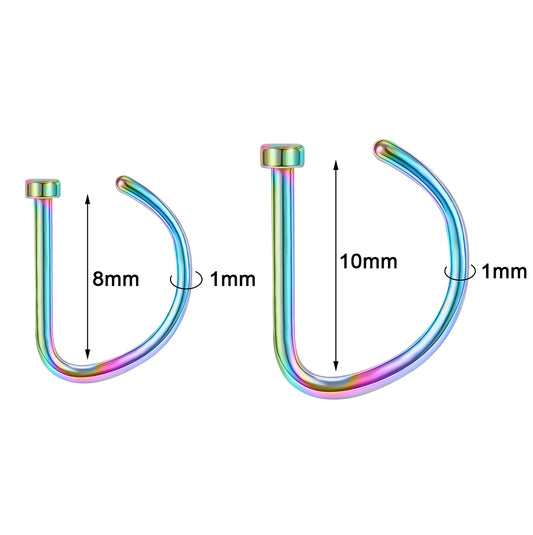 4Pcs/Set 18G Nose Ring Falt Nostril Piercing D Shape Helix Cartilage Piercing