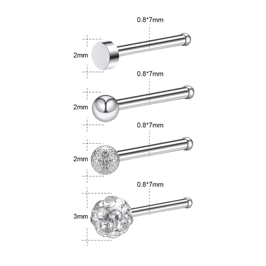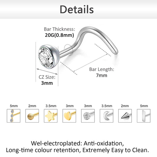 8Pcs/Set Stainless Steel Nose Screw Rings Round Nose Piercing-Economic Set