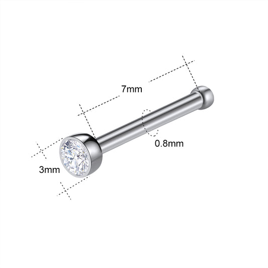 8Pcs/Set 20g Stainless Steel Nose Bone Studs Round Crystal Nose Piercing-Economic Set