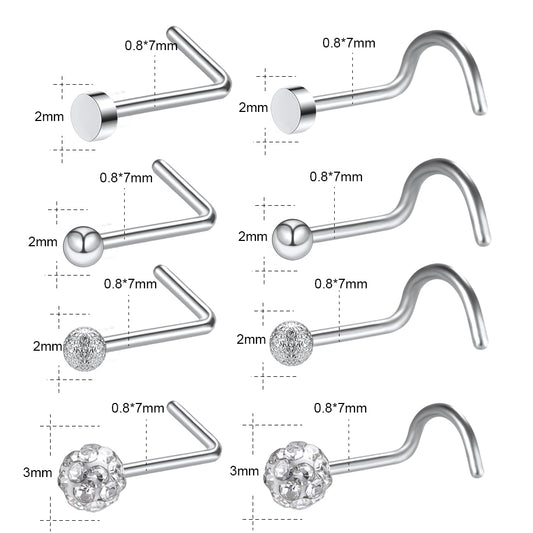 8Pcs/Set 20g L Shaped Nose Studs Round Nose Piercing-Economic Set