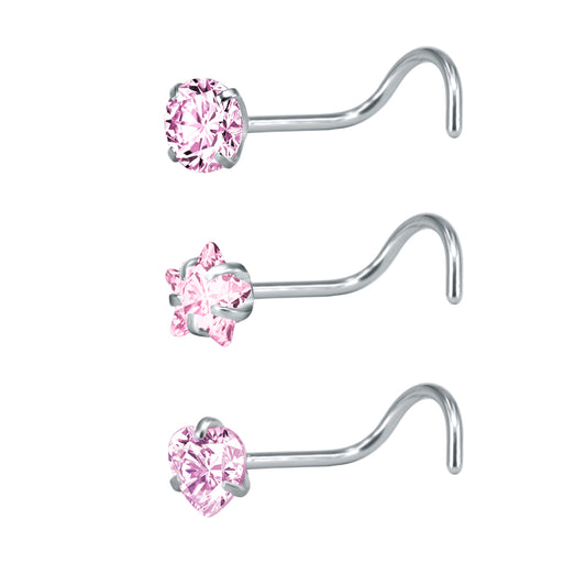 3pcs/Set 20g Nose Stud Piercing Star/Round/Heart Shape Nose Screws-Economic Set