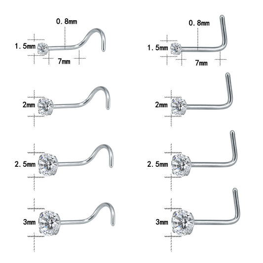 8Pcs/Set CZ Nose Piercing L Shaped/Screws Nose Rings-Economic Set
