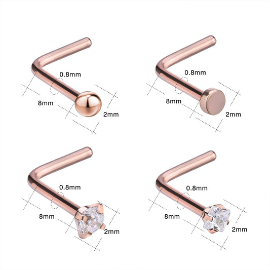 4 pcs/set 20g Thin Rose Gold Nose Rings, L Shape Nose Studs-Economic Set