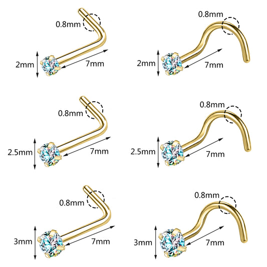 20G AB White Zircon Nose Studs Piercing L Shape Nose Rings 18K Plated Nostril Piercing