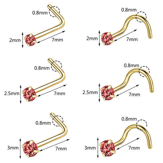 20g Red Zircon Nose Studs Piericng Gold Plated L Shape Corkscrew Nose Rings