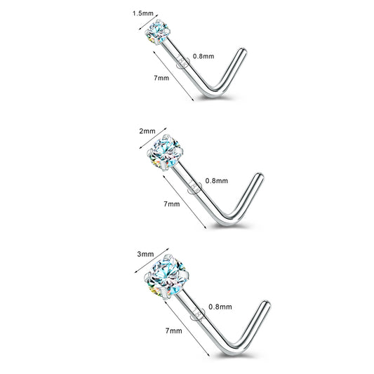 18G/20G Stainlesss Steel Nose Studs L Shape Nose Piercing White Zirconia Nostril Piercing