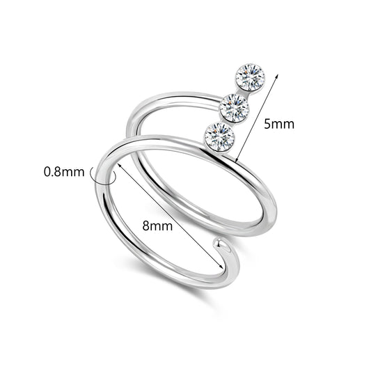 20G White Zirconal Nose Rings Double Layered Spiral Nose Piercing Stainless Steel Nostril Rings