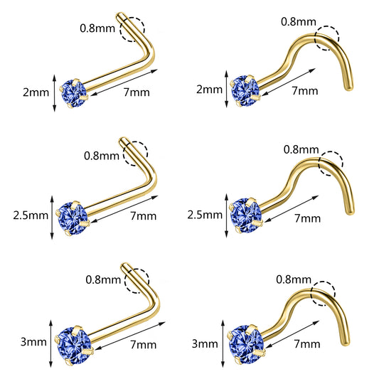 20g Dark Blue Zircon Nose Studs Piericng Gold Plated L Shape Corkscrew Nose Rings