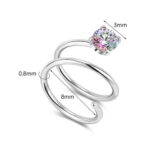 20G Four Claw AB Zirconal Nose Rings Double Layered Spiral Nose Piercing Stainless Steel Nostril Rings