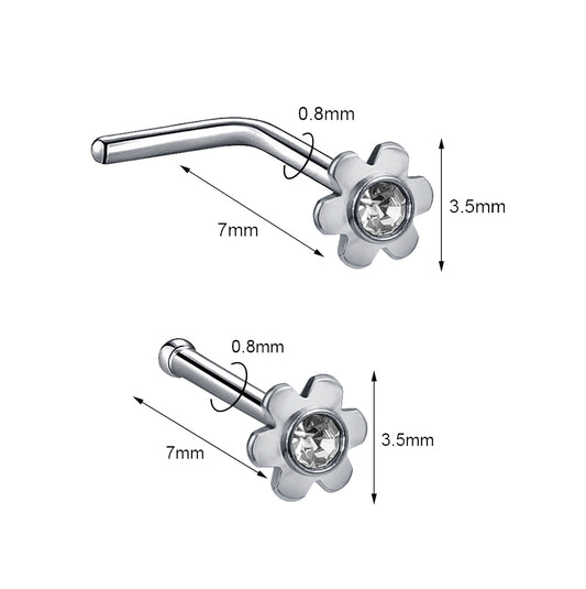 1Pc 20g Crystal Nose Stud Piercing Flower Shaped Nose Bone L Shape