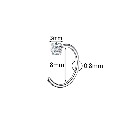 20G Six Claw White Zirconal Nose Rings Double Layered Spiral Nose Piercing Stainless Steel Nostril Rings
