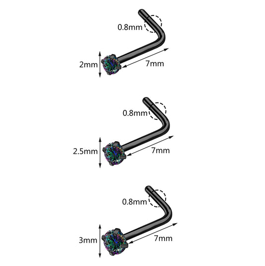6 Pcs/Set 20G AB Black Crystal Nose Stud Piercing L-Shape Nose Ring Black Nostril Piercing