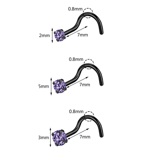 6 Pcs/Set 20G Violet Crystal Nose Rings Black Nose Stud Nose Corkscrew Piercing