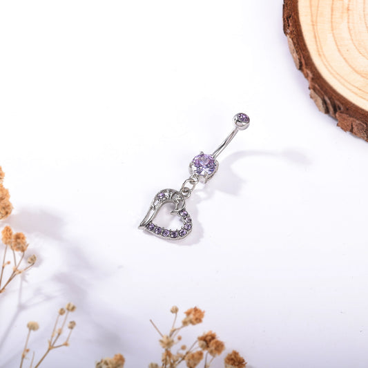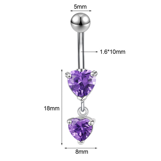 14G Heart Dangle Belly Navel Rings Purple Zircon Belly Button Rings