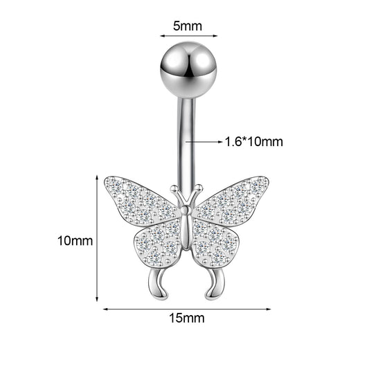 14G Butterfly Belly Navel Rings Bling Zircon Belly Button Rings