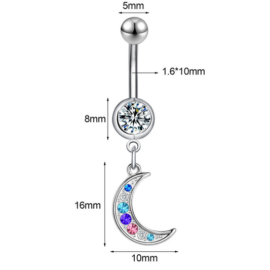 14G Moon Dangle Belly Navel Rings Bling Zircon Belly Button Rings