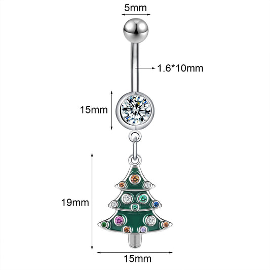 14G Christmas Tree Dangle Belly Navel Rings Bling Crystal Belly Button Rings
