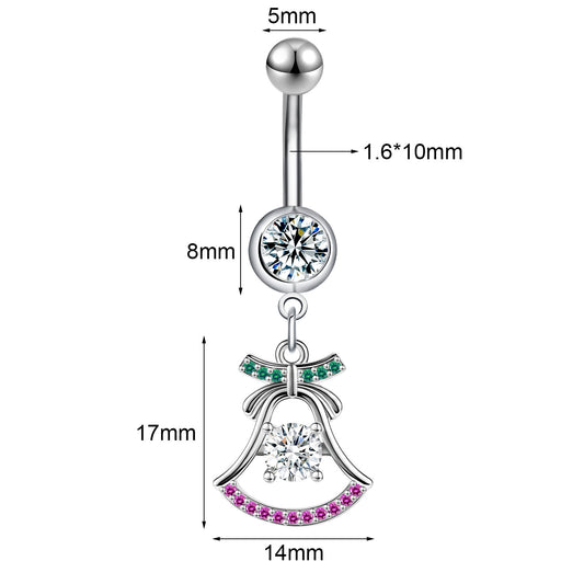 14G Small Bell Belly Navel Rings Clear Zircon Belly Button Rings Christmas Jewelry