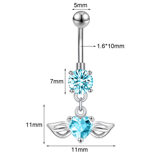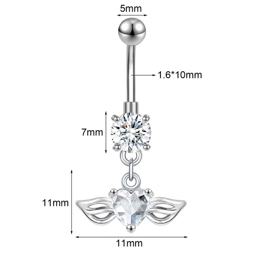 14G Double Wing Belly Navel Rings Heart Zirconia Belly Button Rings