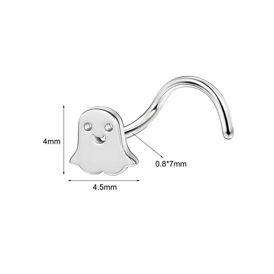 20G Ghost Nose Studs Piercing Corkscrew Nose Rings Halloween Nostril Piercing