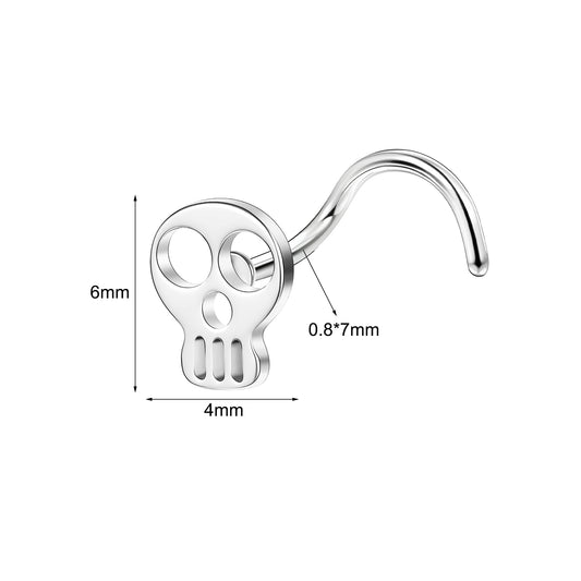20G Skull Nose Studs Piercing Corkscrew Nose Rings Halloween Nostril Piercing