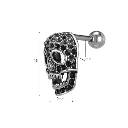 16G Grid Skull Stud Earring Black Crystal Ear Stud Jewelry