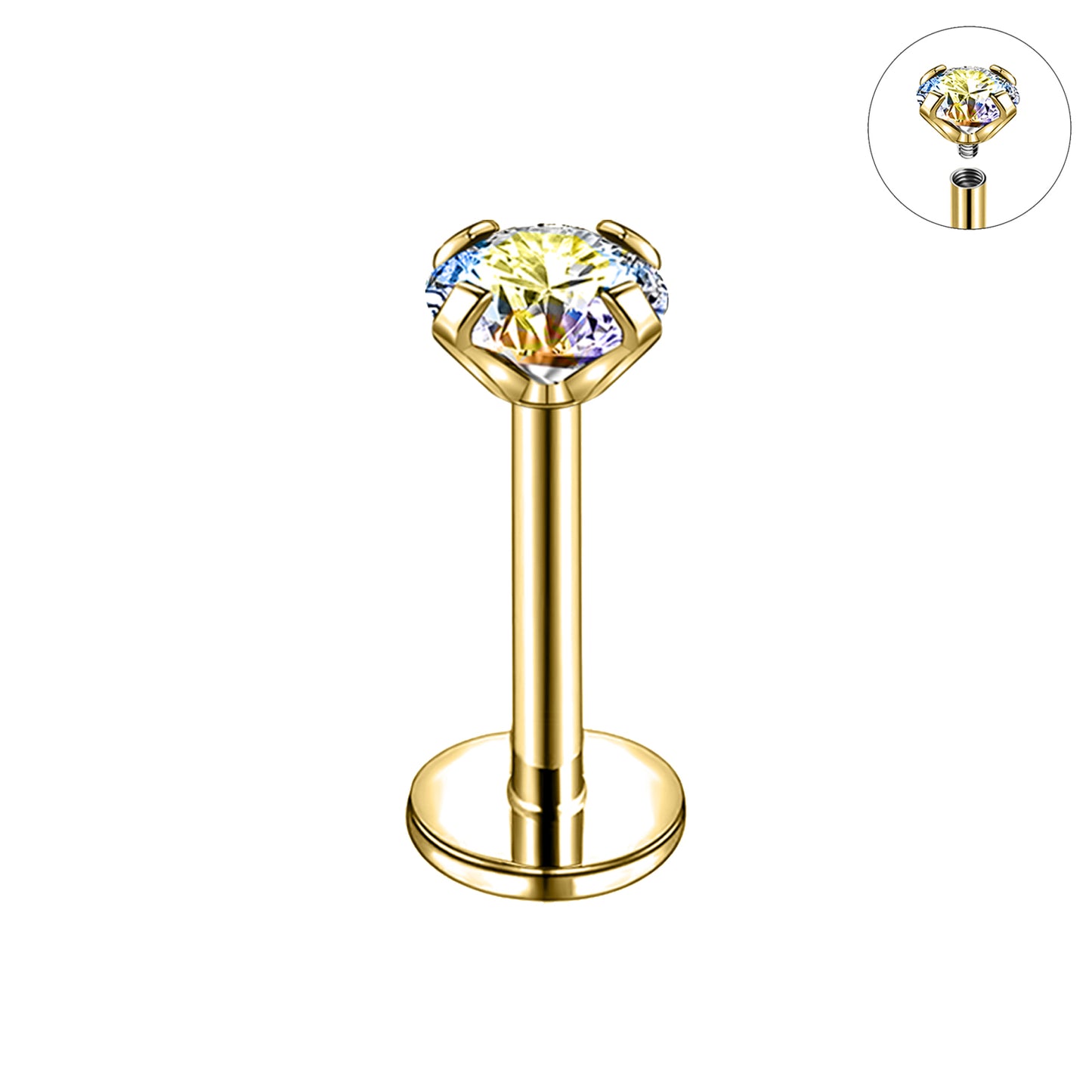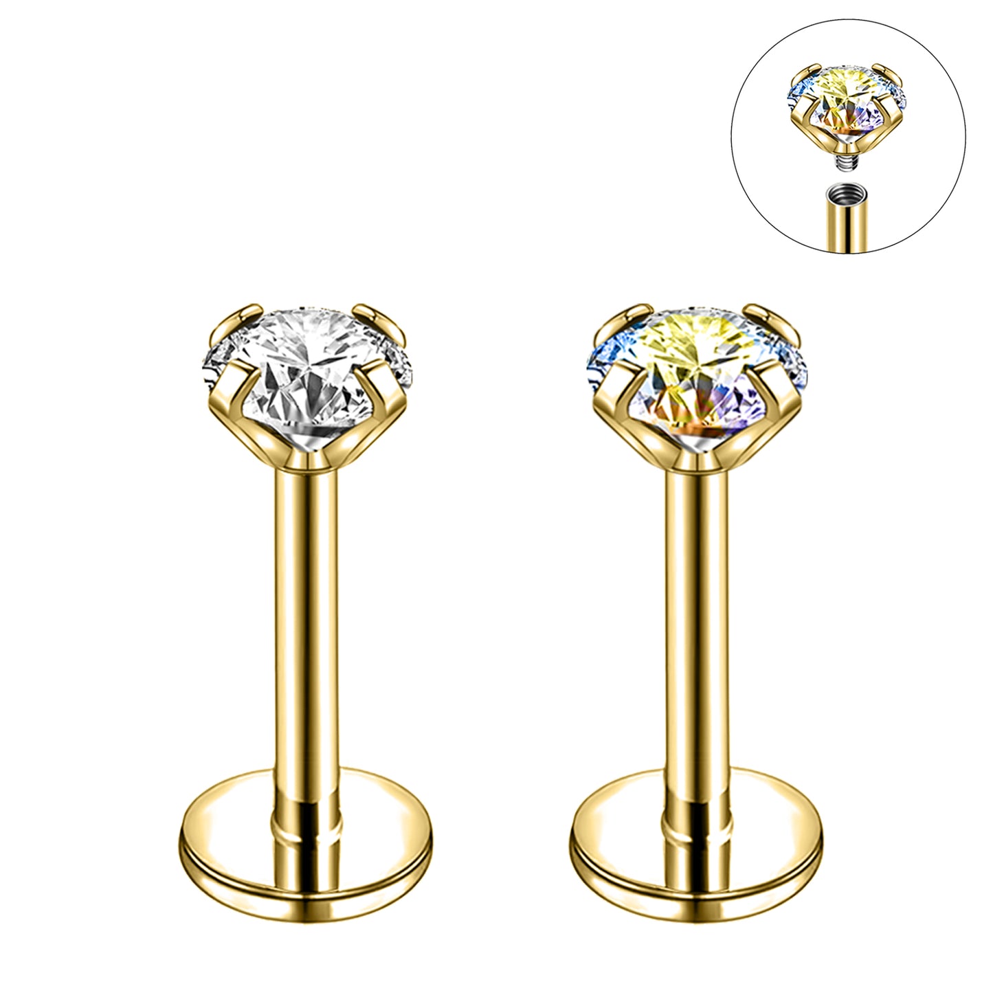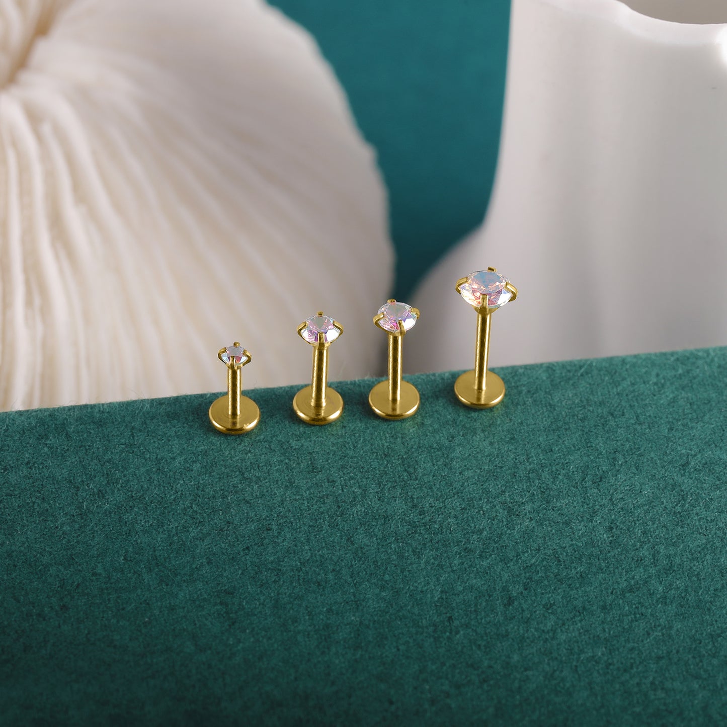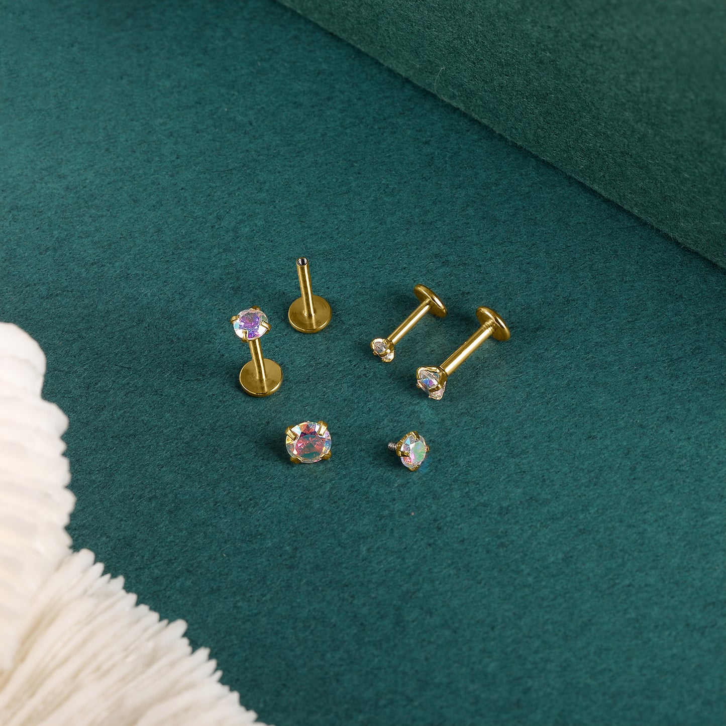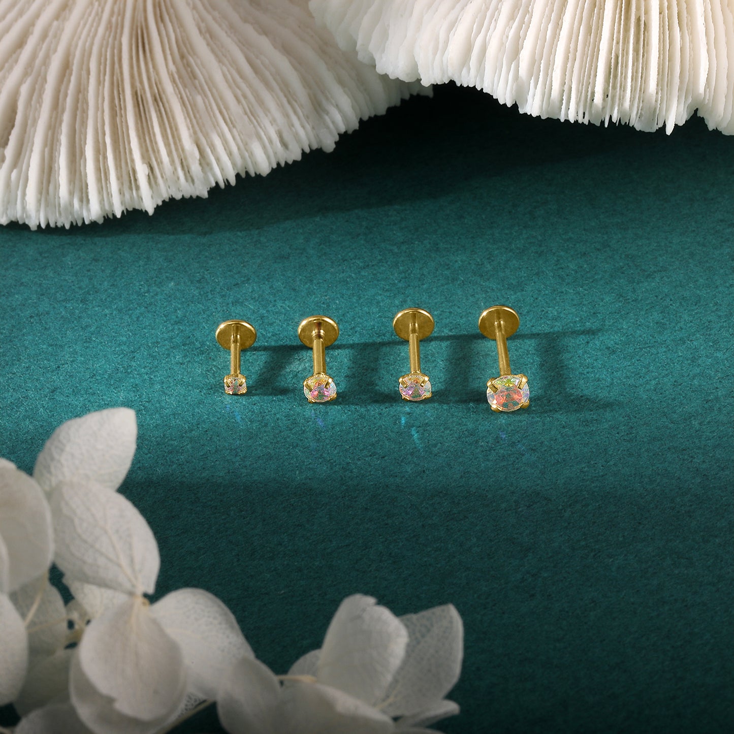 16g/18g/20g Flat Back Earring Rainbow Zircon Cartilage Earring InternalThread Conch Helix Piercing