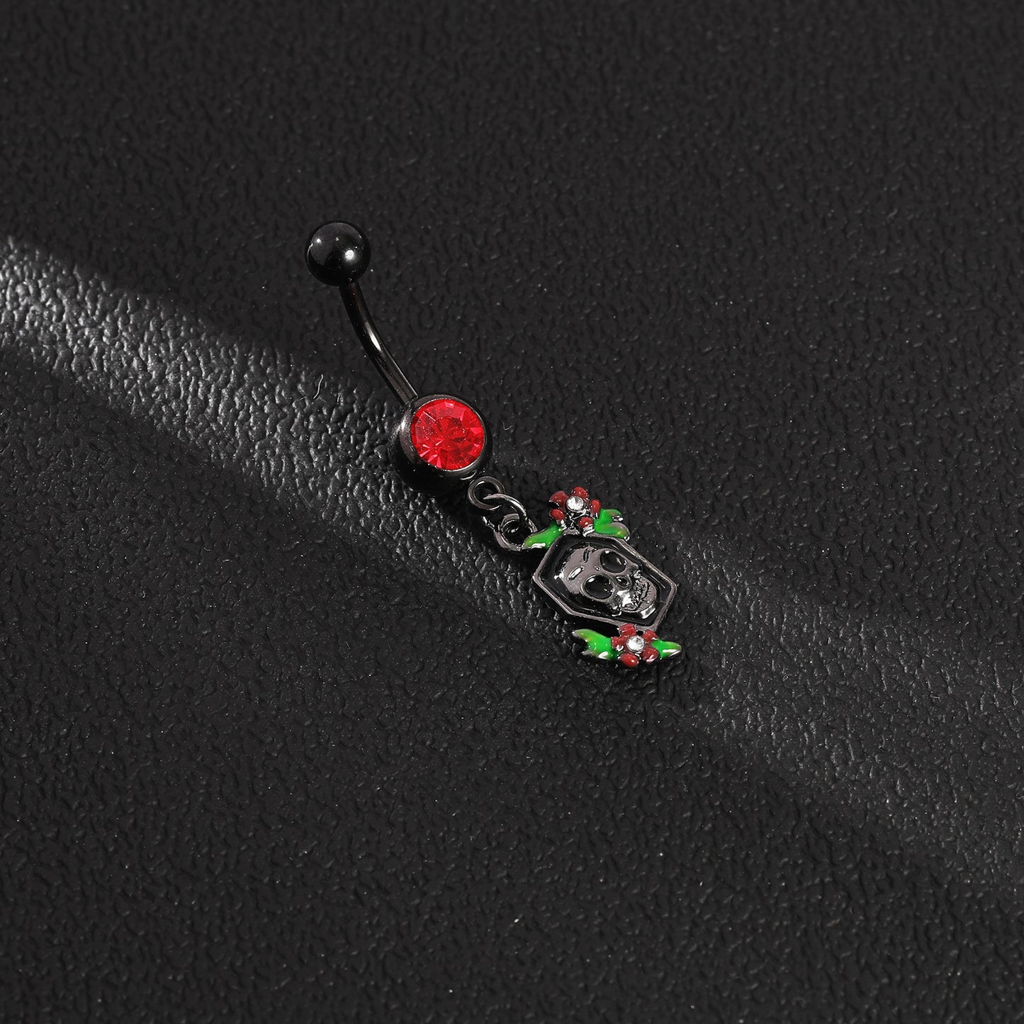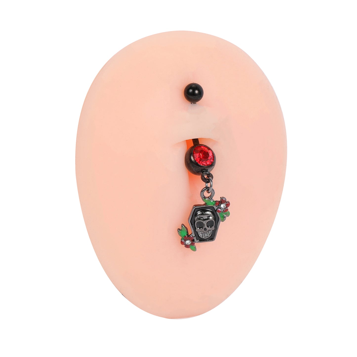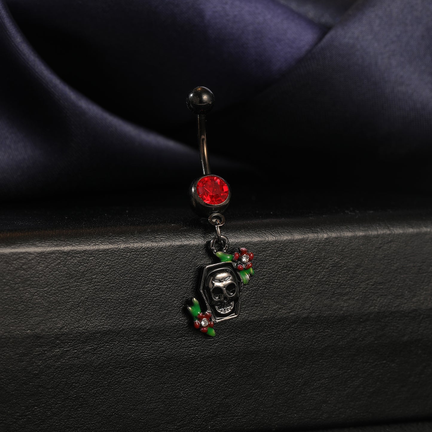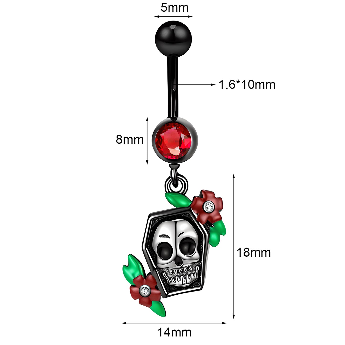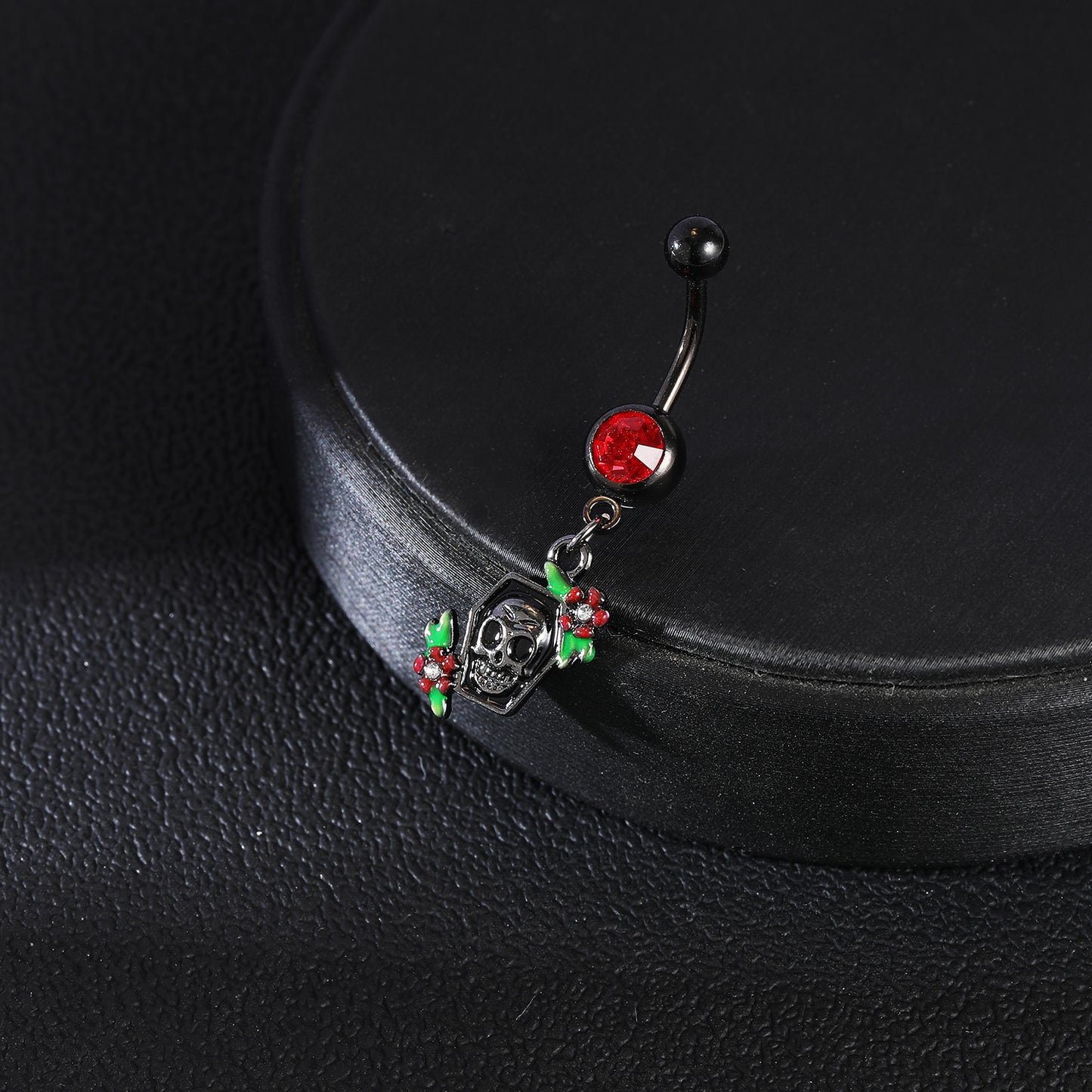 14G Skull Dangle Belly Navel Rings Red Zirconia Belly Button Rings