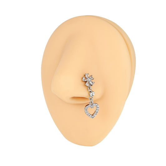 20G Heart Dangle Nose Studs Piercing L Shape Nose Rings Cubic Zirocn Nostril Piercing