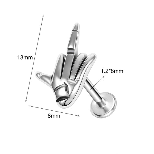 16g Hand Finger Labret Ring Flat Back Stud Earring Conch Helix Lip Piercing