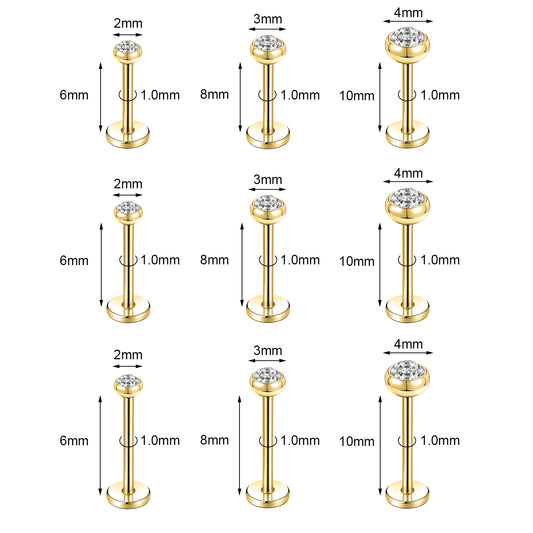 16G 9Pcs/Set Crystal Labret Rings Monroe Medusa Gold Lip Piercing Conch Tragus Helix