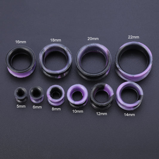 5-22mm Thin Silicone Flexible Black Purple Ear Tunnels Double Flared Expander Ear Gauges
