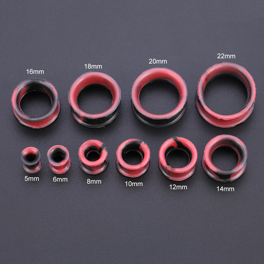 5-22mm Thin Silicone Flexible Red Black Ear Tunnels Double Flared Expander Ear Gauges