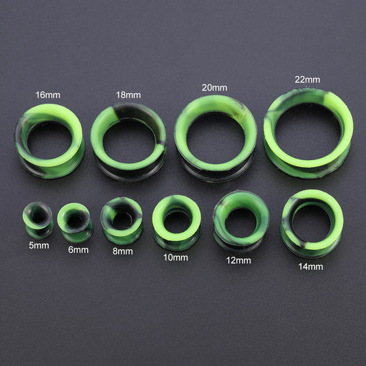 5-22mm Thin Silicone Flexible Green Black Ear Tunnels Double Flared Expander Ear Gauges