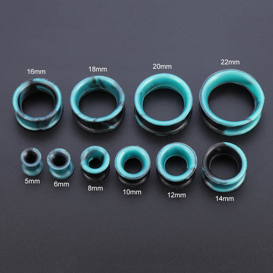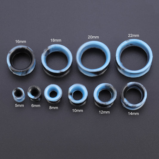 5-22mm Thin Silicone Flexible Light Blue Black Ear Tunnels Double Flared Expander Ear Gauges