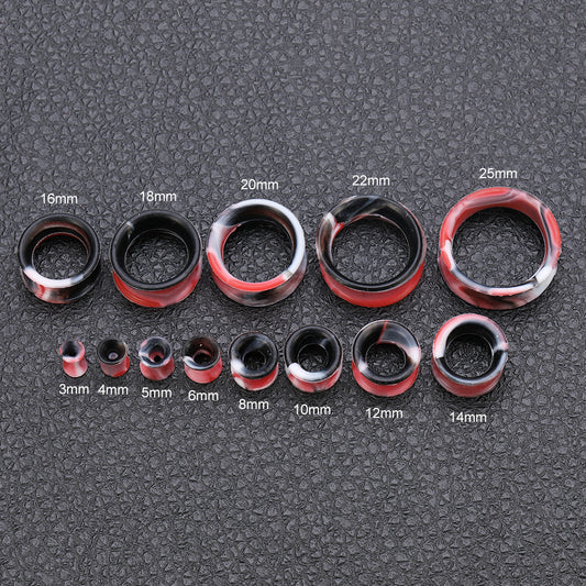 3-25mm Thin Silicone Flexible Black White Red Ear Tunnels Double Flared Expander Ear Gauges