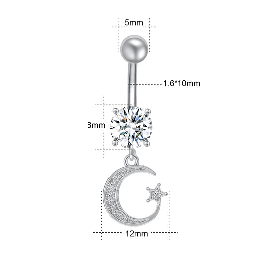 14g Drop Dangle Moon Stars Belly Button Rings Rose Gold Crystal Navel Piercing Jewelry