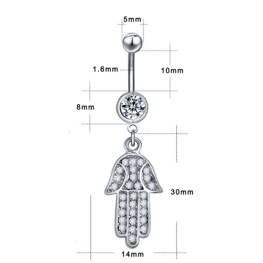 14g Drop Dangle Palm Shape Belly Button Rings Stainless Steel Navel Piercing Jewelry