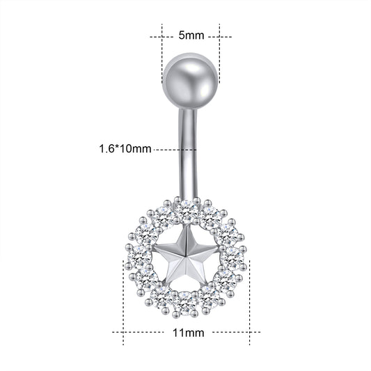 14g Pretty Star Belly Button Rings Rose Gold Cubic Zirconia Navel Piercing Jewelry