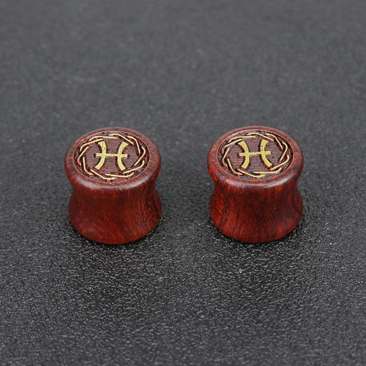 1 Pair 8-20mm Reddish Brown Pisces Ear Plug Tunnel Carved Solid Wood Expander Ear Gauges Piercings