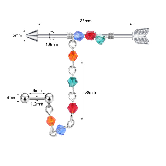 14G Arrow Industrial Barbell Earring Dangle Chain Stud Earring Piercing