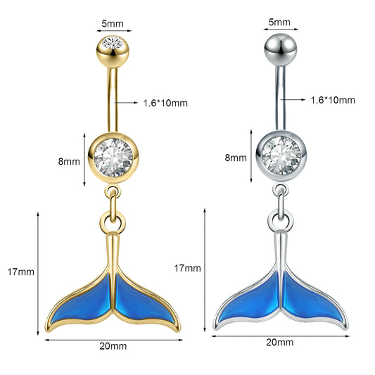 14g Blue Mermaid Belly Button Rings Crystal Belly Navel Piercing