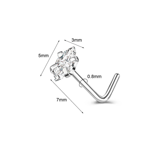 20g Diamond Nose Stud Piercing L Shaped Nostril Piercing