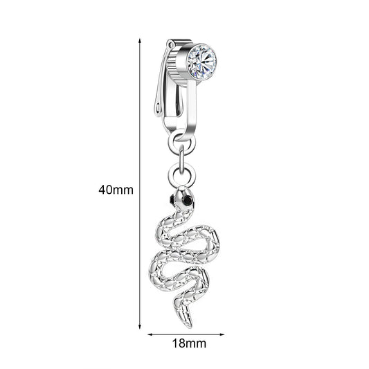 Fake Snake Dangle Belly Navel Clip Crystal Belly Button Ring